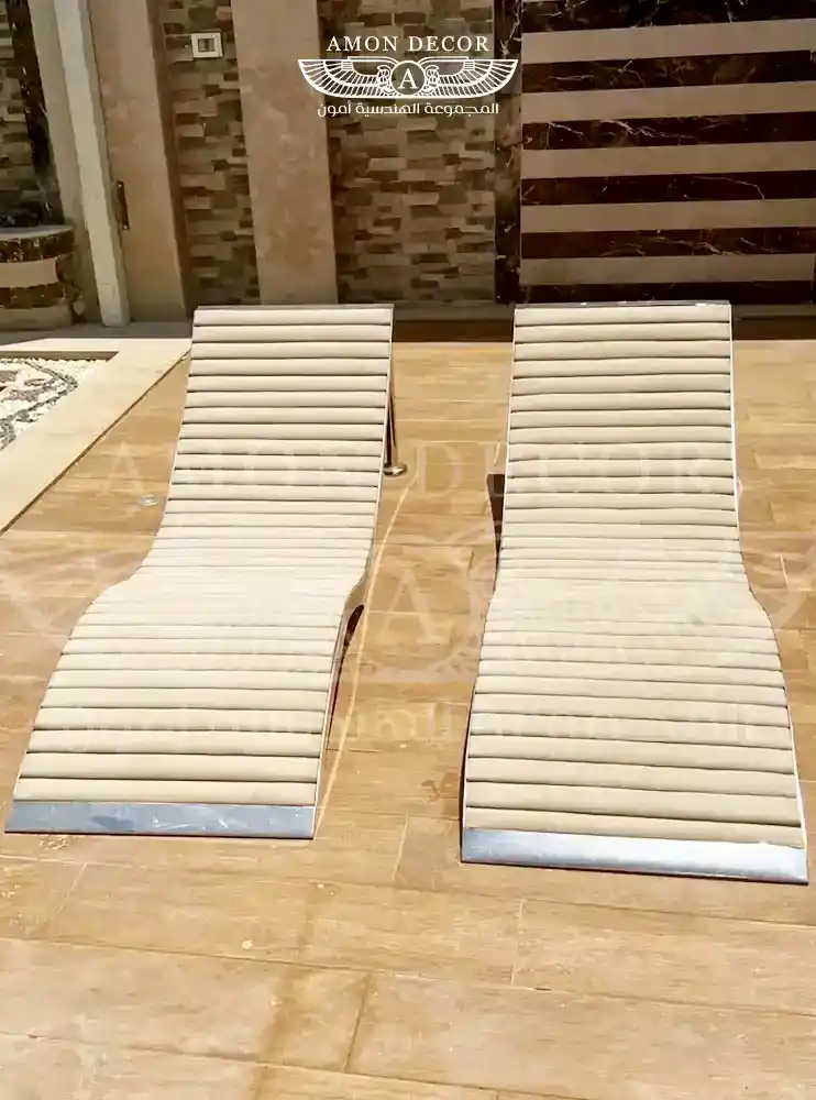هي كراسي إسترخاء مصنوعة من مادة الستانلس ستيل المقاوم للصدأ، وهي مادة تضيف جمالية على الديكور ومضادة للماء، مما يجعلها مثالية للاستخدام في الهواء الطلق، خاصة حول حمامات السباحة.