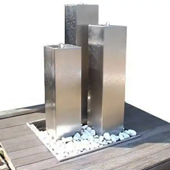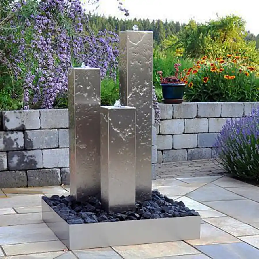 نوافير المياه المصنوعة من الفولاذ المقاوم للصدأ هي خيار شائع لكل من المناظر الطبيعية التجارية والسكنية. فهي متينة ومقاومة للتآكل وسهلة التنظيف. يمكن أن تكون نوافير الفولاذ المقاوم للصدأ أيضًا حديثة أو تقليدية في التصميم ، مما يجعلها خيارًا متعدد الاستخدامات لأي نوع من الديكور.